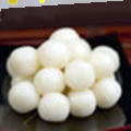 | (Shiratama ni itsumo no chisaki gin no saji) ((Watanabe Michiko)) everytime shiratama is served with tiny silver spoon * Shiratama is dumpling made of rice powder. It is usually an ingredient of azuki-bean soup for dessert.